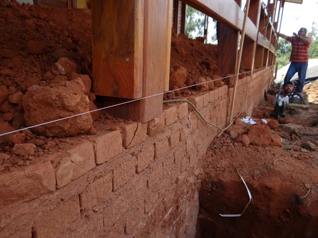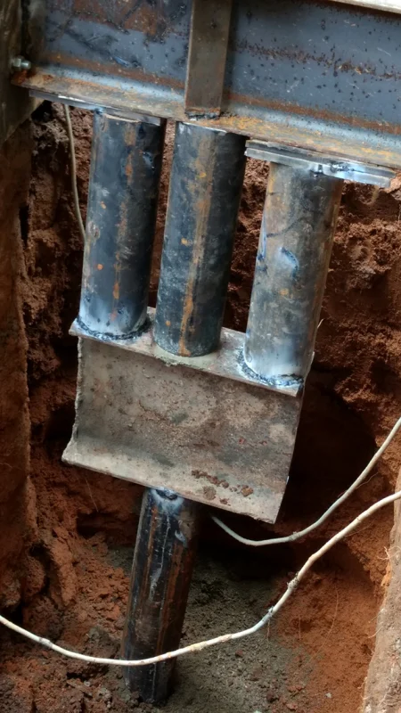 Além das condições adversas, um outro agravante era a ocorrência de nível de lençol freático superficial, o que dificultava ainda mais a condição de trabalho. Não havia como executar Fundação através de escavação do solo, nem brocas manuais. O Desafio passou a ser nosso. Observando a situação no entorno, havia elementos estruturais (Vigas intermediárias em concreto armado em paredes de bloco de concreto já existentes.