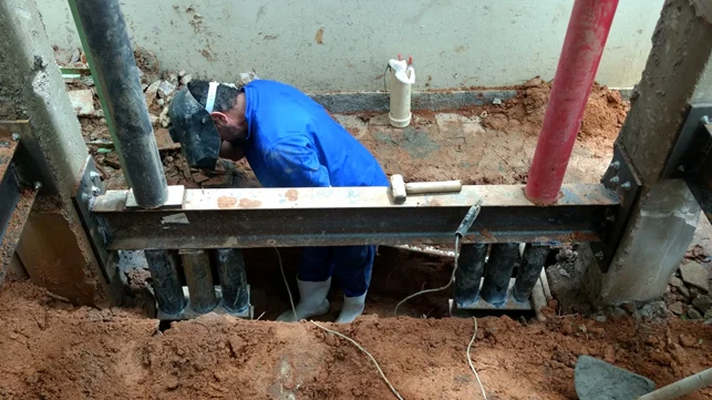 Este foi um Caso inusitado. O Cliente iria executar um Mezanino em estrutura metálica às dependências internas do Galpão de uma Concessionária da JEEP e não havia como executar a fundação desta edificação. Portanto, o Cliente não solicitou um Reforço de Fundação, mas sim, cravar estacas “MEGA” de Concreto em espaço confinado, tanto em espaço físico quanto à limitação do pé direito (altura da cobertura) aonde não havia como entrar com Equipamento para instalá-lo e executar as Estacas “in loco”. Um outro agravante era a ocorrência de nível de lençol freático superficial, o que dificultava ainda mais a condição de trabalho.